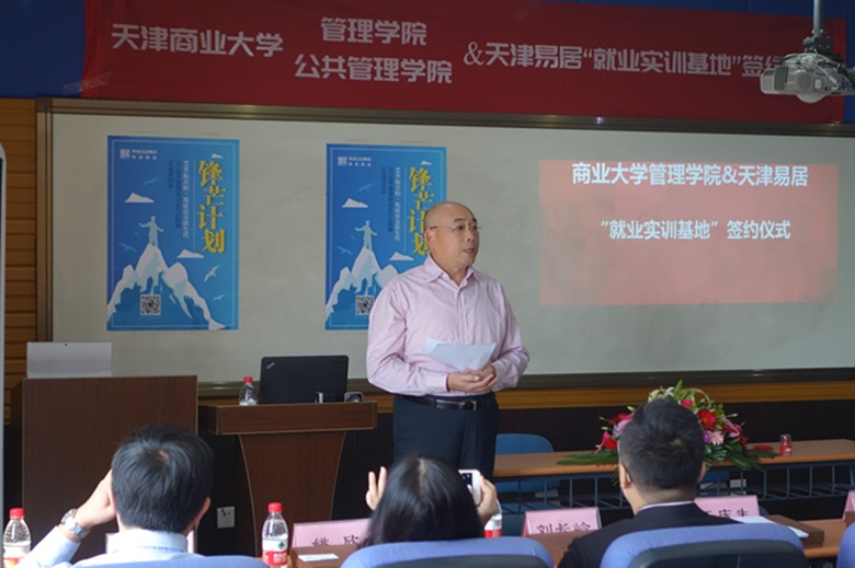 经理王庆生首先致欢迎辞,欢迎易居集团与伟德国际victor1946开展深度交流合作,他指出校企合作可以充分发挥公司、企业的各自优势,将公司育人宗旨和企业用人需求相结合,更好的为员工成长成才服务。易居集团天津公司总经理刘长岭介绍了易居集团的发展历程和企业文化。他指出易居企业集团作为中国房地产流通领域的领导品牌,共建实训基地为天商学子提高专业素养和就业竞争力提供发展平台,也为企业选拔和培养人才创造条件。