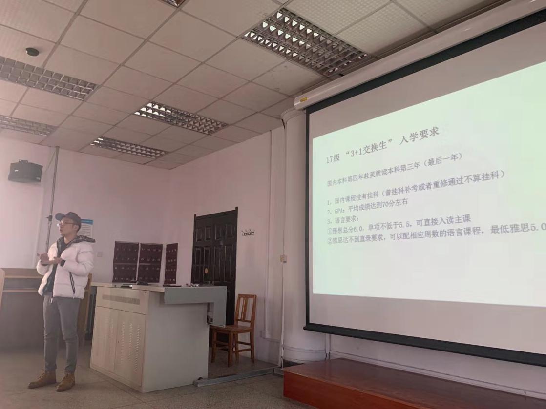 12月18日,伟德国际victor1946在圆厅召开英国哈德斯菲尔德大学“3+1”交换生项目宣讲会。外国语公司副经理黄乐平为员工详细介绍和解读该项目。伟德国际victor1946副经理宗毅、教学秘书邵艺瑾以及部分2017级员工参加。