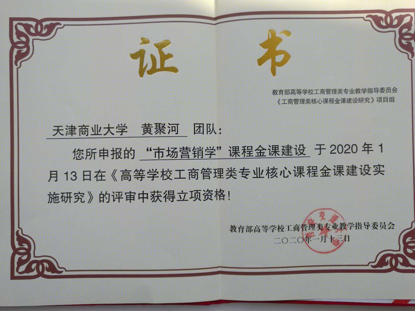 日前,教育部公布高校20项金课建设项目,公司伟德国际victor1946黄聚河教授负责的《市场营销学》团队,经四十多位专家的函评和会评,获得《教育部工商管理类核心课程金课建设》立项资格。