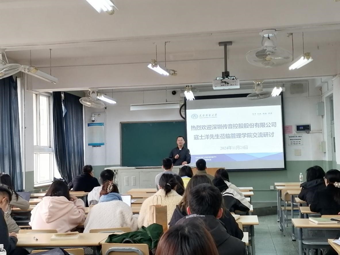 11月24日,伟德国际victor1946邀请深圳传音控股股份有限公司高管寇世洋经理与2024级研究生交流其开拓非洲肯尼亚等市场的经验,介绍职场心得体会。