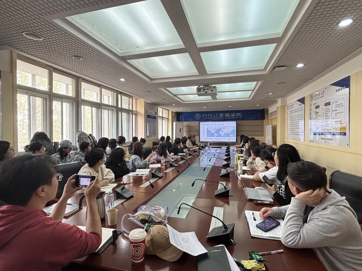 讲座现场学术氛围热烈,林教授不仅系统阐述了NII(网络、智能与创新)协同的理论框架,还与在座教师就各自研究方向展开深入交流,并给予专业点评。对于研究生关注的“模拟模型参数校准与实证数据结合”问题,林教授结合自身研究经验,分享了数据采集与模型验证的实用技巧,并推荐了相关文献和工具。