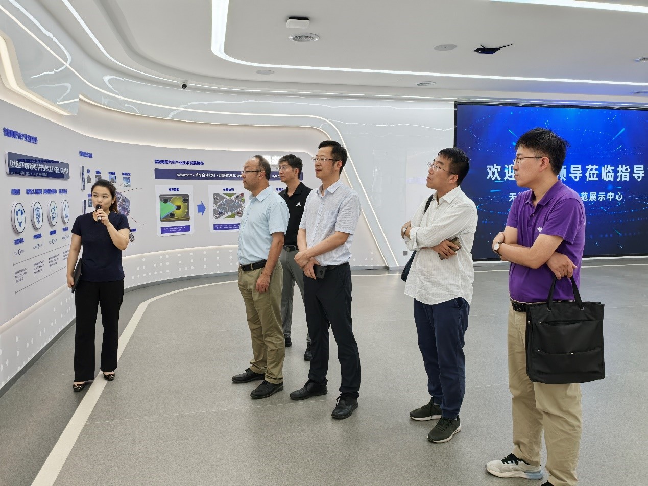 调研活动中,成员们参观了天津智能车联网示范展示中心,深入了解河北区智能网联汽车商业化的前沿技术与发展情况,体会场景搭建、道路测试、示范运营等层面的探索成果,并现场观摩了运营指挥调度中心的操作模式,亲身体会了如数字底座、智慧运维、MAAS出行平台、全息路口等前沿技术。