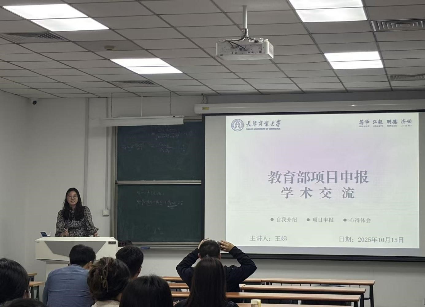 王娣以申报“教育部项目”为例,坦诚分享了在跨专业背景、纵向项目申报经验等方面的成长历程。她表示,作为青年教师,面对科研起步阶段的困难与挑战是常态,关键在于找准方向、持续积累、勇于突破。在分享环节,结合自身实践,她分享了从“找问题”“找冲突”到运用“逆向思维”等具体破题技巧,鼓励青年教师在交叉领域寻找创新点,逐步构建具有个人特色的研究方向。围绕其主持的课题《传统—现代张力下老字号异地扩张的地理解码与破局路径研究》,系统梳理了自2021年以来的科研与项目申报历程,深入浅出地讲解了选题思路与申报体会感想。她强调,成功的项目申报应紧密契合国家战略导向,精准对接公司与公司的发展定位,同时充分发挥个人研究特长,实现理论研究与现实需求的有机结合。