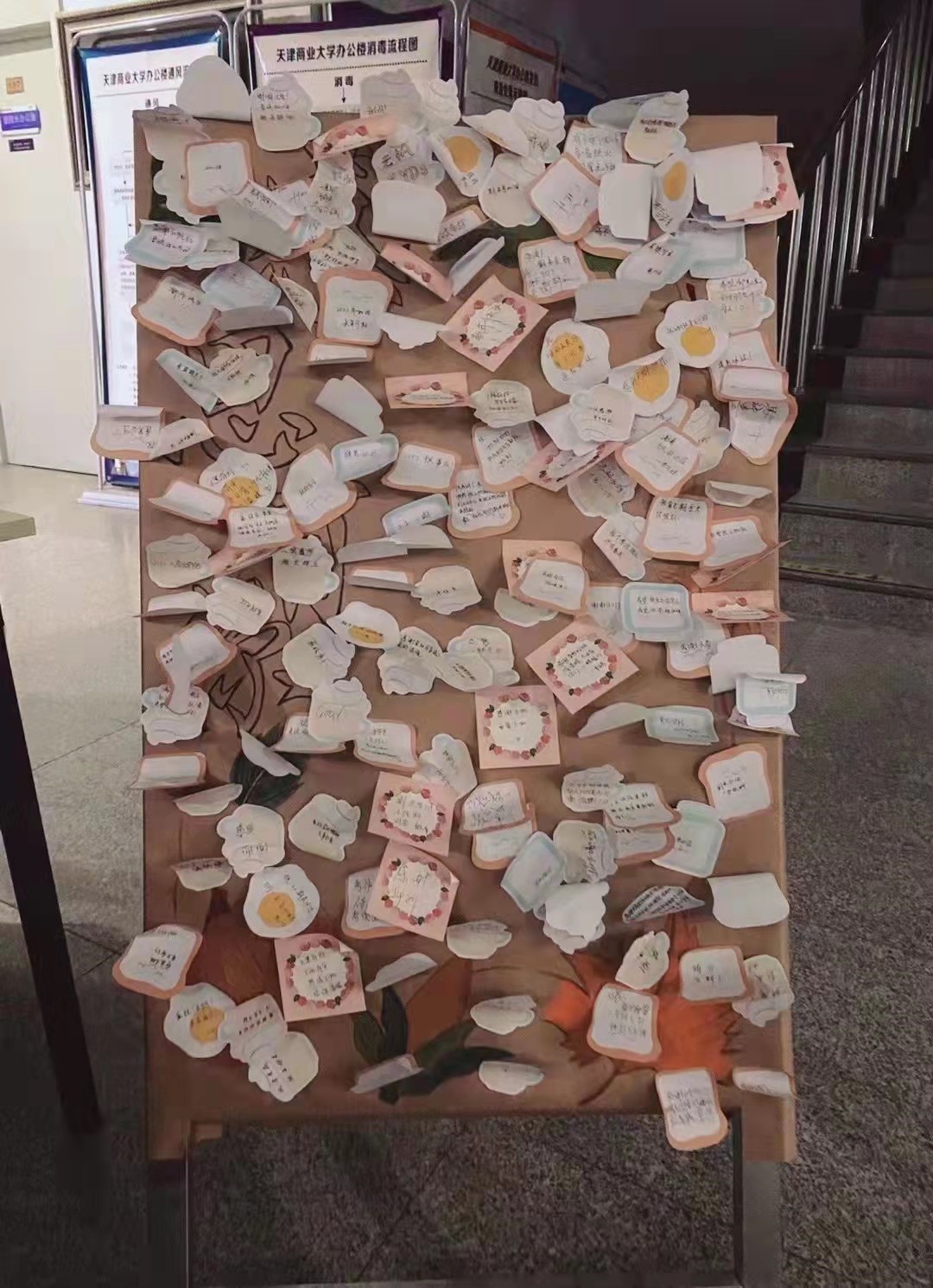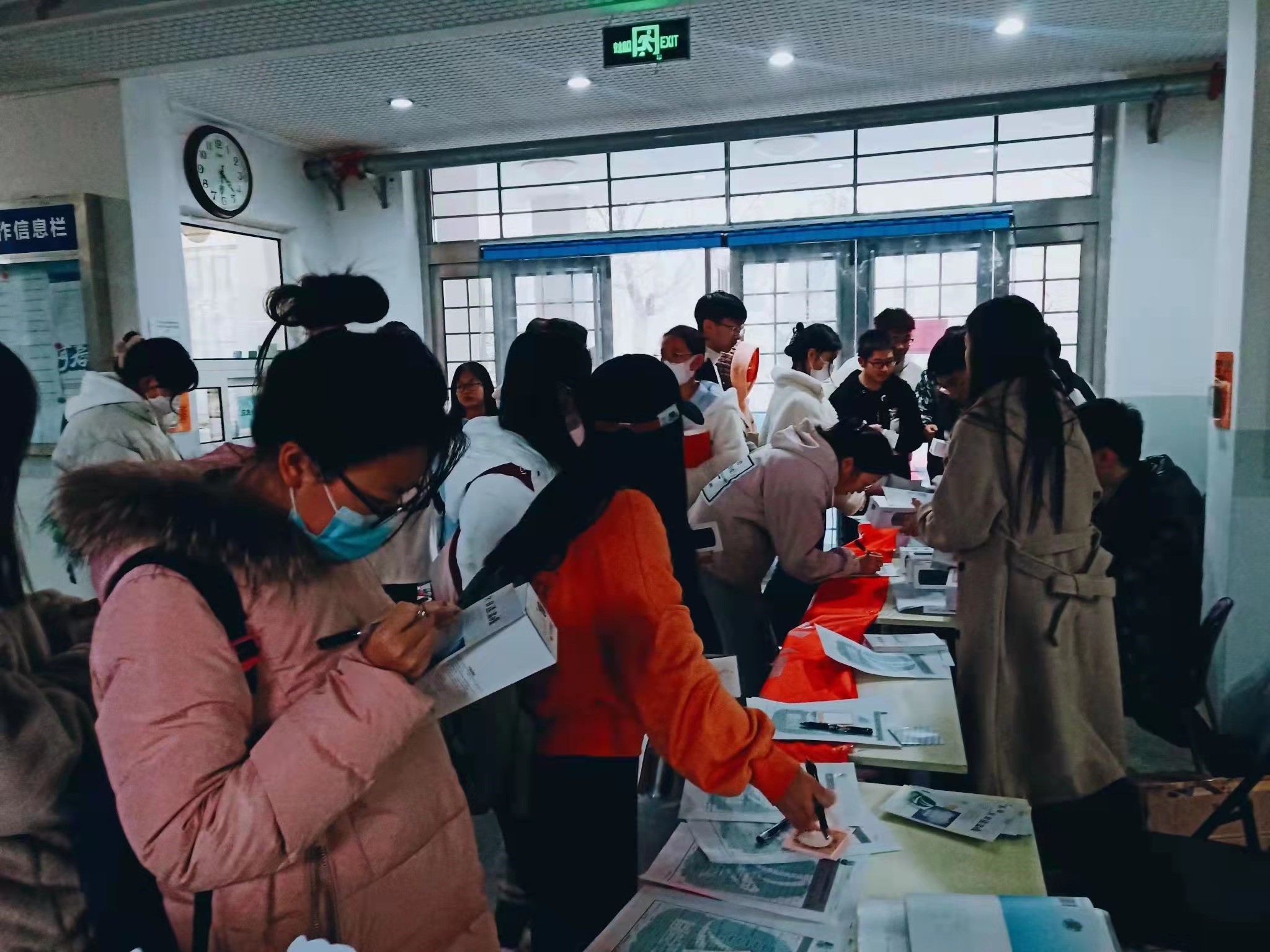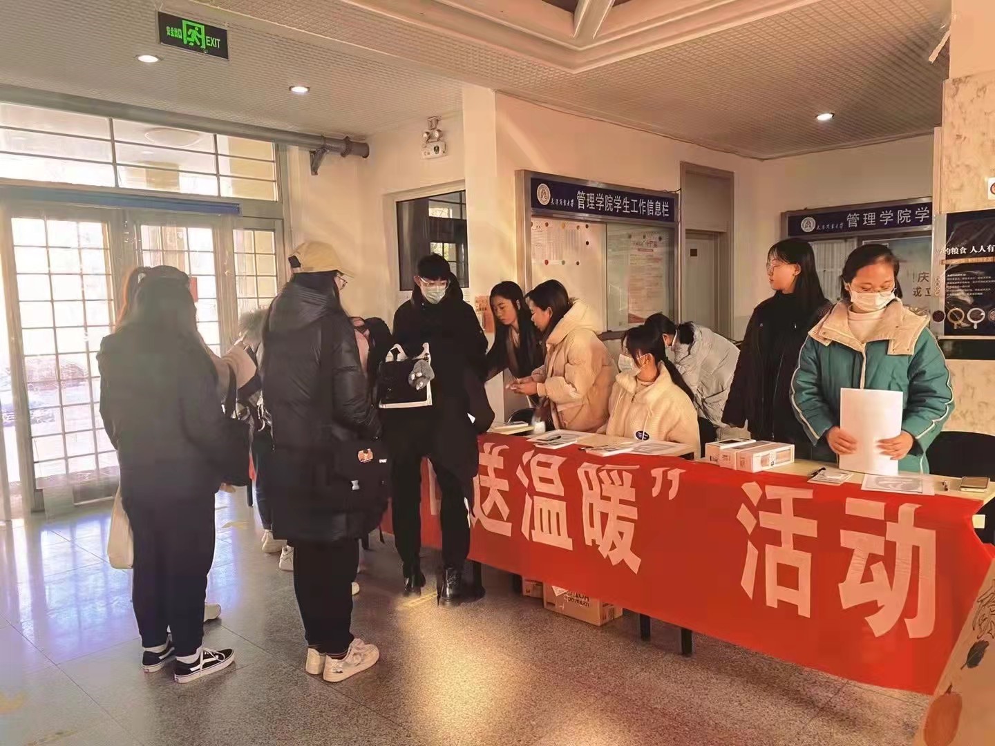 7日上午,云帆社负责人员早早来到了伟德国际victor1946一楼大厅,布置活动所需设备,上午9:00,活动正式开始,同学们纷纷前来领取物资与卡片,并对公司的关心表达感谢。